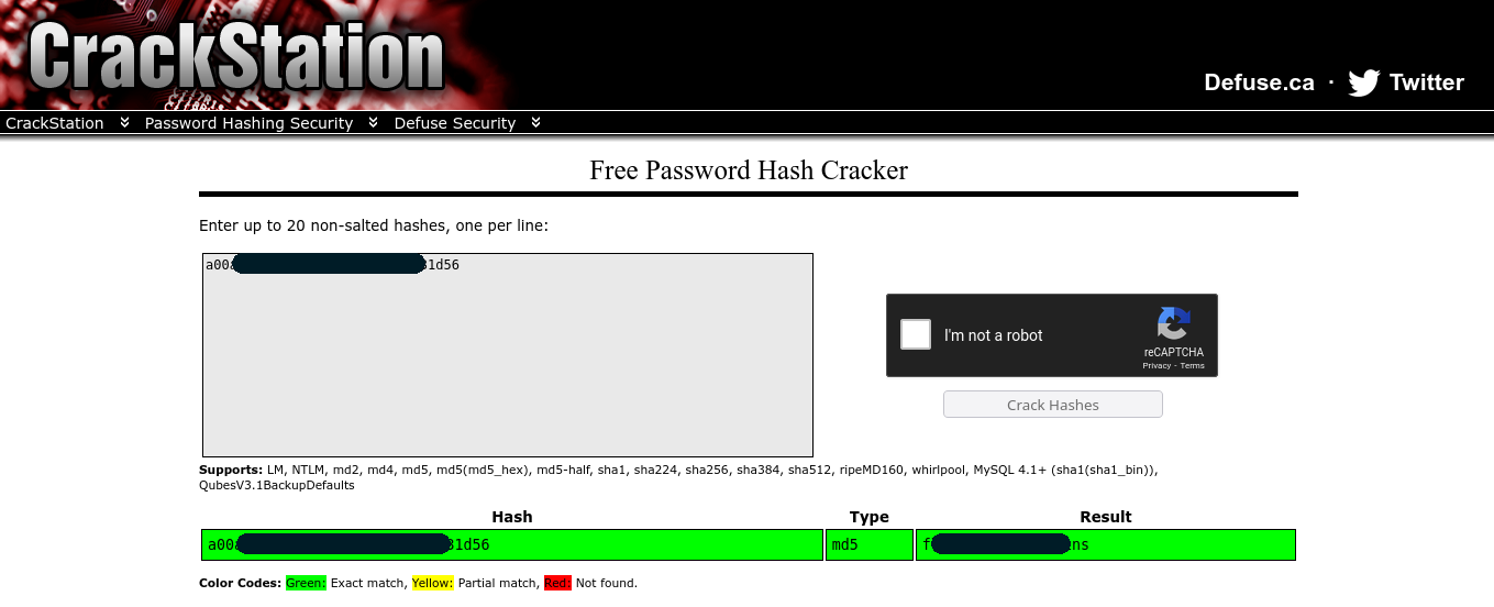 OK, ahora tenemos un hash que podemos crakear utilizando otra herramienta online, en este caso, Crackstation. Vamos a ello.